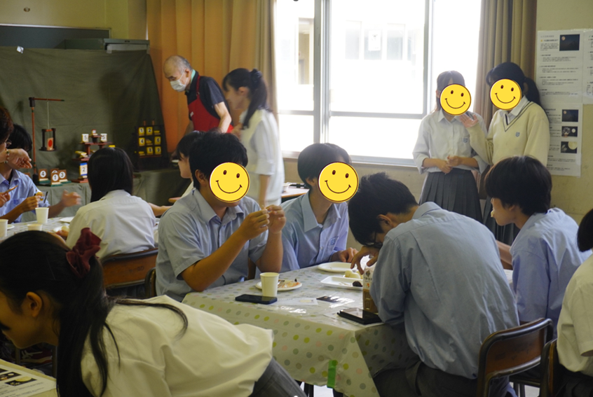 9月18日木曜日15時半、県立船橋北高等学校カフェ盤楽堂オープン。今回のテーマは「お月見を深く知る!」。窓と壁には大きな満月の絵と、お月見の由来や各地の月見団子を紹介した簡単お月見解説。テーブルには、三段に並べられた関東風月見団子と、それに添えるあんこ。洒落たお菓子に慣れた若い子達には古風すぎるかなという一抹の不安もありましたが、月見団子を初めて食べる生徒さんも多く、スタッフに教わりながら、ひとつの体験として、みなさん月見の文化を楽しんだ様子。窓際奥のスペースでは恒例になった射的。この一角だけ緊張感と集中力に満ちあふれていました。参加された生徒のみなさん、それぞれゆっくりとした時を過ごせたようです。学校という枠がない、理由がなくてもいていい、先生もいない、何をしてもいい、何もしなくてもいい、素の自分でいられる、自由に息の吸える空間を提供する。居場所カフェは、こういうところです。以下、生徒さんの感想よりピックアップ。
