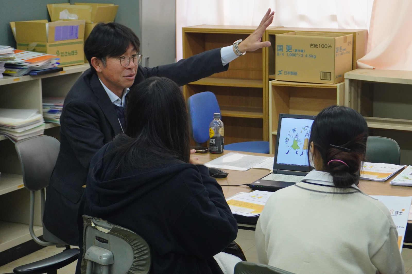 11月13日木曜日13時35分より、県立船橋北高校2学年進路ガイダンスが行われました。進路ガイダンスは、進学と就職のふたつの分野に分かれます。このうち就職ガイダンスの方をハイティーンズサポートちばが担当しました。若者支援を行っているNPOが高校の就職ガイダンスを企画する例はあまりないらしく、タウンページの記者も取材に見えていました。このガイダンスが通常の就職ガイダンスとどこが違うのかというと、参加される企業が全て三咲近郊の企業や事務所である点、進路の情報を得るだけでなく地域との繋がりを作ることも視野に入れている点です。