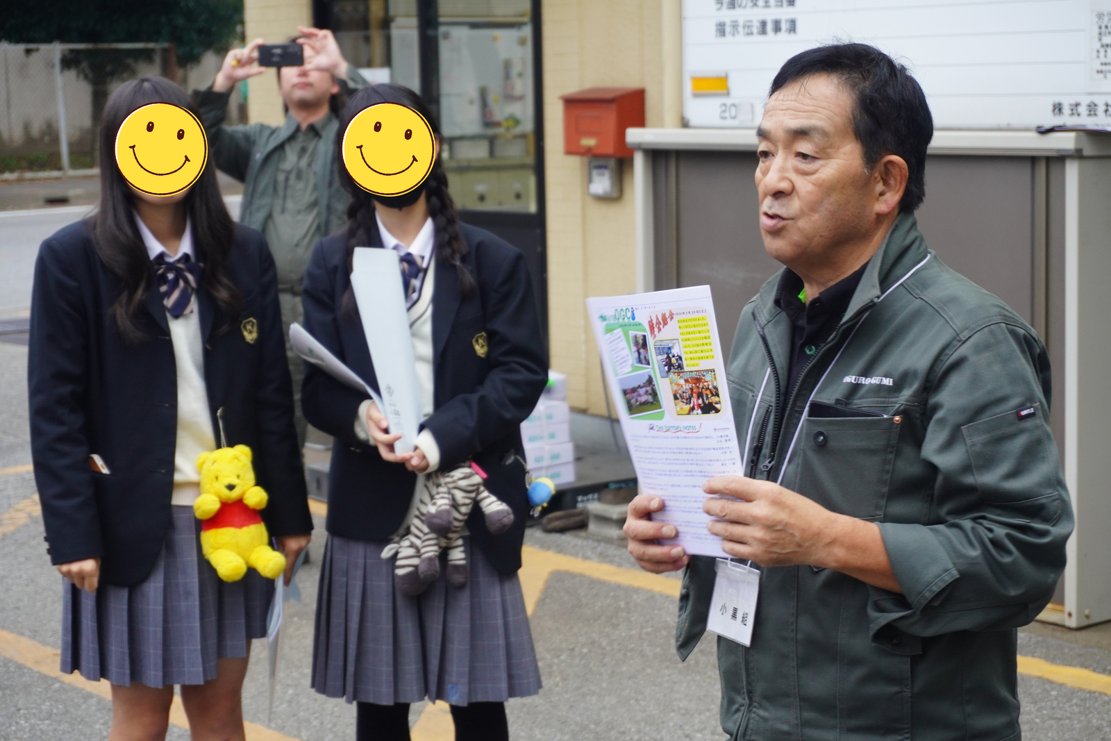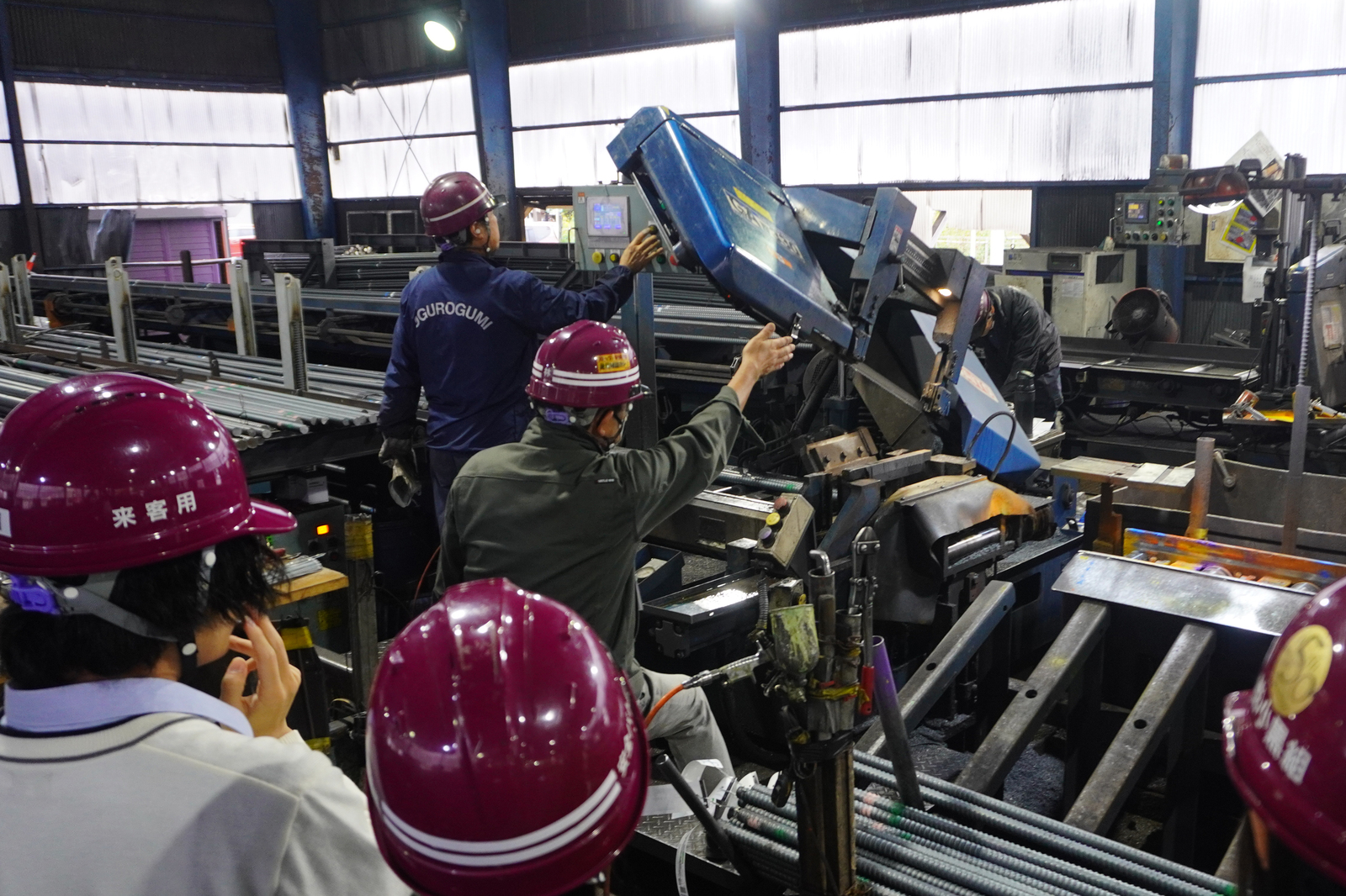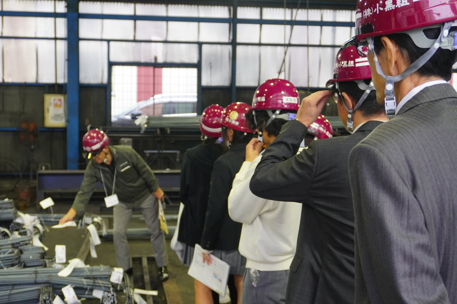 14時50分からは工場見学。船橋北高校の道を挟んだところにある、株式会社小黒組の工場を見学に行きました。大勢の社員の方々が高校生達を出迎えてくれました。鉄骨を加工する様々な処理工程を見学、そしてその迫力は想像を超えました。いつもカフェ盤楽堂で冗談を言って笑って話しかけてくるスタッフの、作業工程を説明する凜とした立ち姿に驚いた生徒さんもいるはずです。人との繋がりで、カフェもガイダンスも成り立っています。